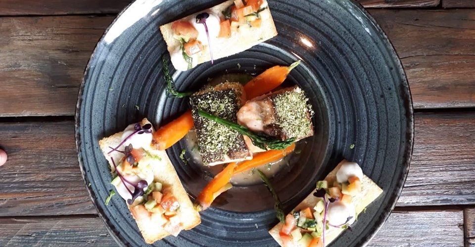Στη συνέχεια φρυγανίζουμε 1 φέτα ψωμί πολύσπορο και προσθέτουμε τα μαριναρισμένα λαχανικά μας. Φτιάχνουμε μια μπρουσκέτα με απλά λόγια προσθέτοντας λευκό ταραμά!